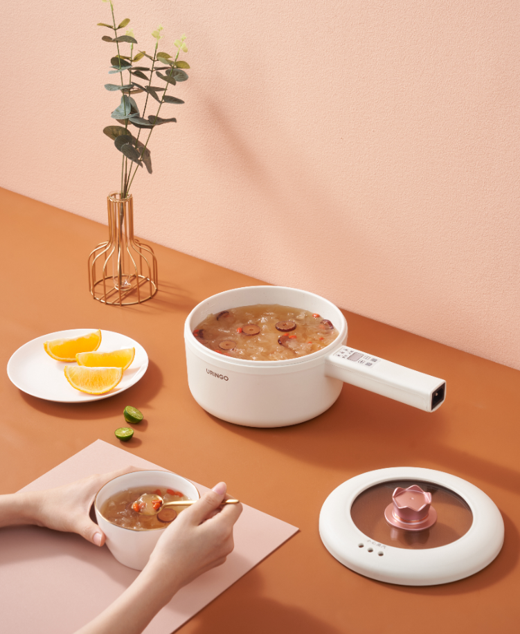 一人食不再是孤独,而是一种精致享受。真正让每个琐碎日常都变得令人期待的,也恰好就隐藏在一蔬一饭这样简单而普通的小细节里。以七彩叮当多功能电煮锅为例,除了好看的皮囊还有有趣的灵魂,清新简约的设计,除了煮锅,上层带有同样小巧的小蒸笼,整个锅可以满足煎、炒、焖、蒸、煮、涮等多种功能。24h保温和9.5h预约功能的贴心设计;电子显示屏微电脑控制,实时调节火力和档位;上层蒸包子、玉米,下层顺便熬个粥,一顿营养丰富的早餐开启元气满满的一天;下班回家听着音乐涮各种食材,一天的疲惫一扫而光。1.6L容量,一人独享,一次就可以满足全部美食乐趣;陶瓷油不粘内胆,一擦即净;一口小锅满足了独居党、宿舍党的多样化需求。